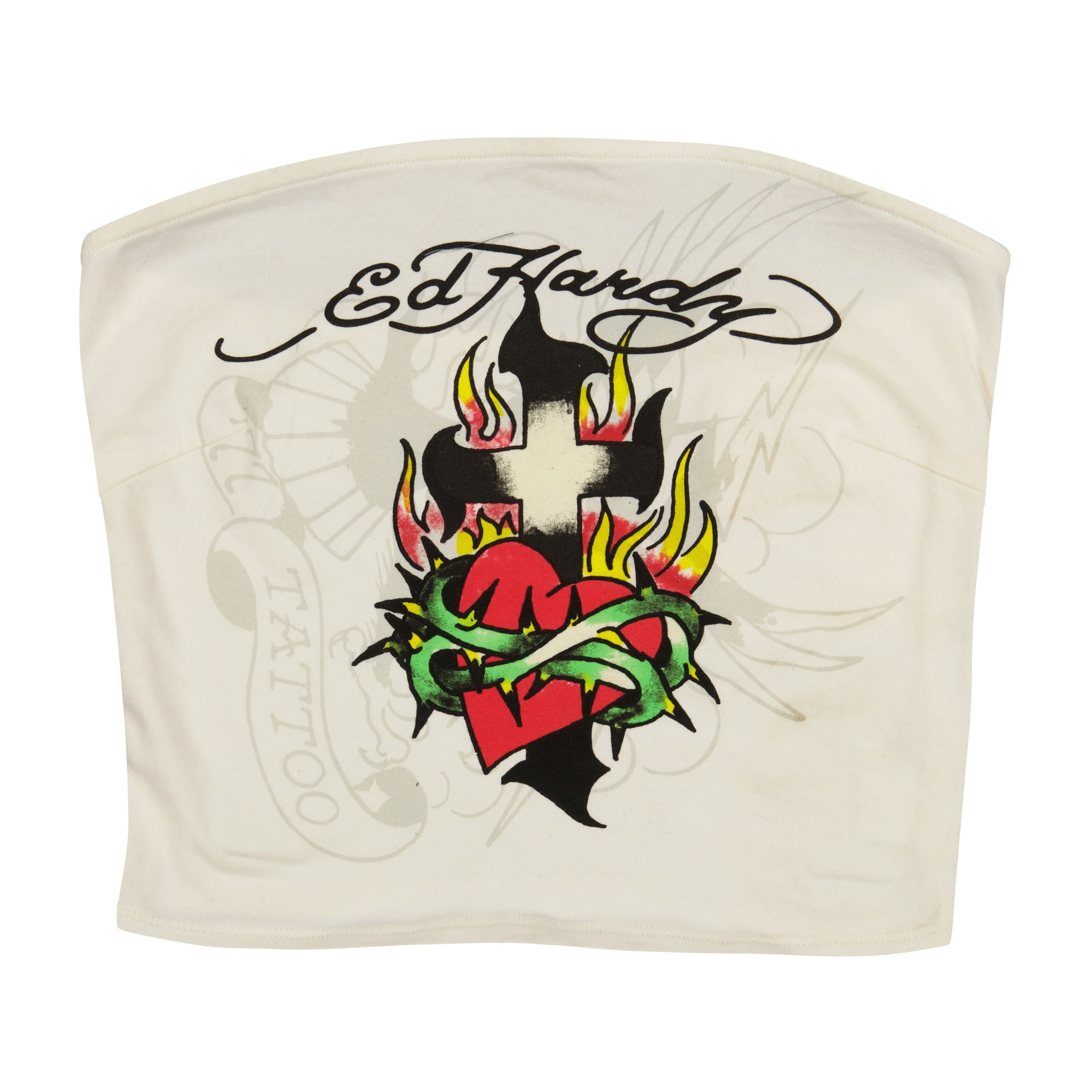 Fitted tube top featuring layered archival graphics and complete with black signature logos. Pair with our Cross Heart Booty Short to complete your look!