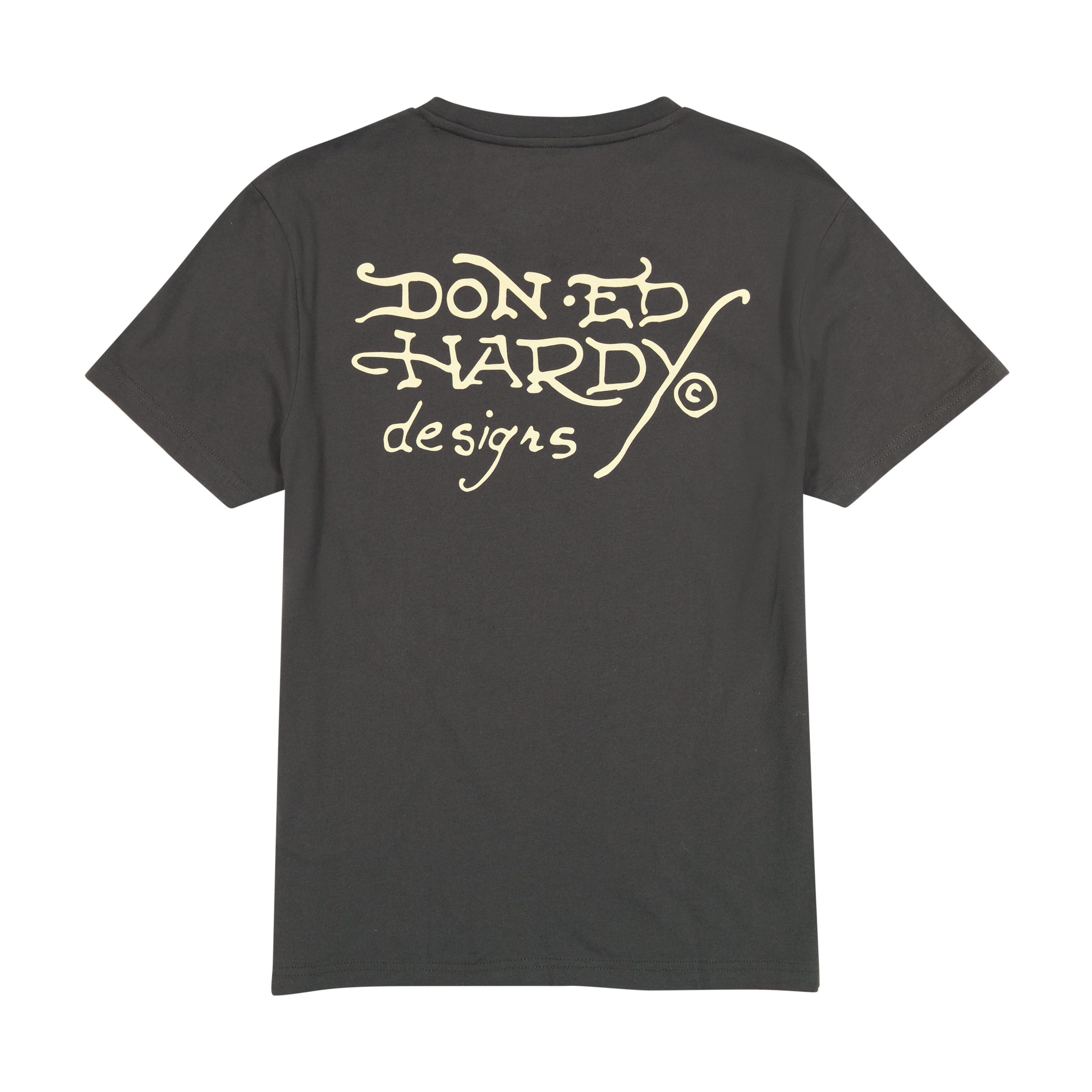 This rhinestone adorned t-shirt is cut in a regular fit and constructed from a soft cotton blend. Complete with an Ed Hardy dagger snake graphic and two archival logos.