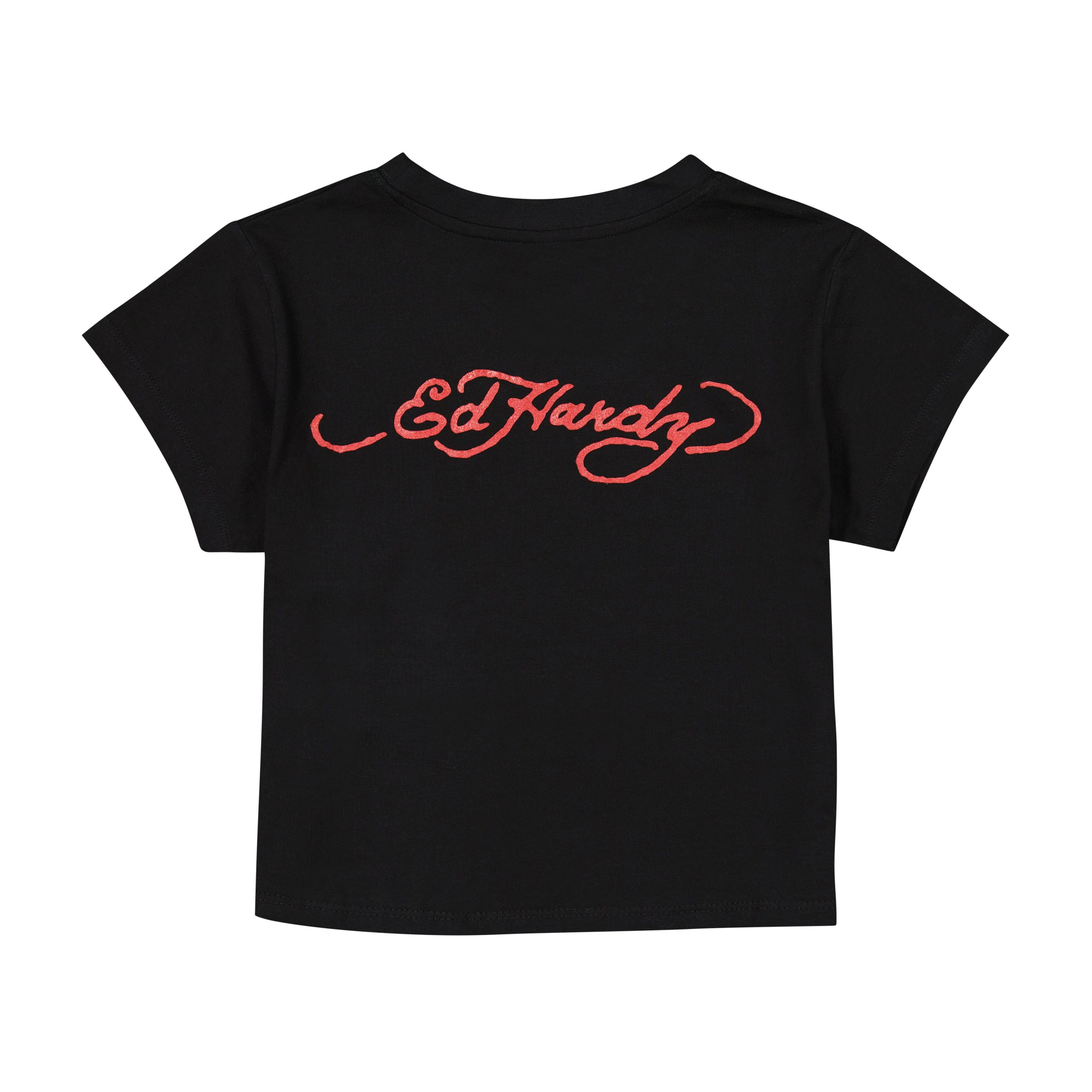 This cropped baby tee features a Motley Crue logo and Dr. Feel Good graphic.?